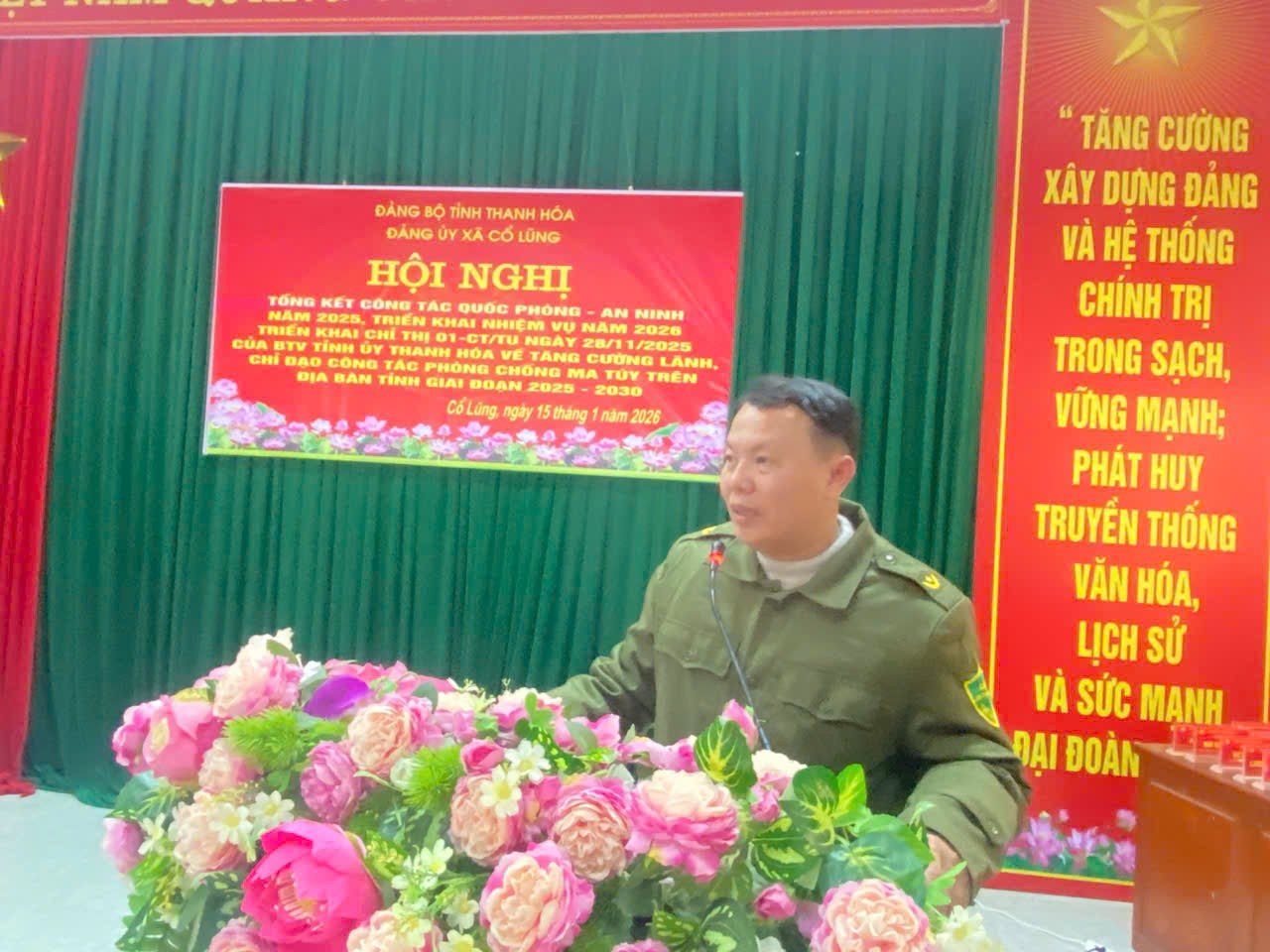 Dự và chỉ đạo và chủ trì hội nghị có đồng chí Lê Văn Sơn Bí thư Đảng ủy,Chủ tịch HĐND xã, Đồng chí Lê Văn Hoài Phó Bí thư Đảng ủy Chủ tịch UBND xã, các đồng chí trong Ban Thường vụ Đảng ủy, Thường trực HĐND, UBND, Ủy ban MTTQ xã; trưởng các ban, ngành, đoàn thể; bí thư chi bộ, trưởng thôn và lực lượng vũ trang trên địa bàn xã.