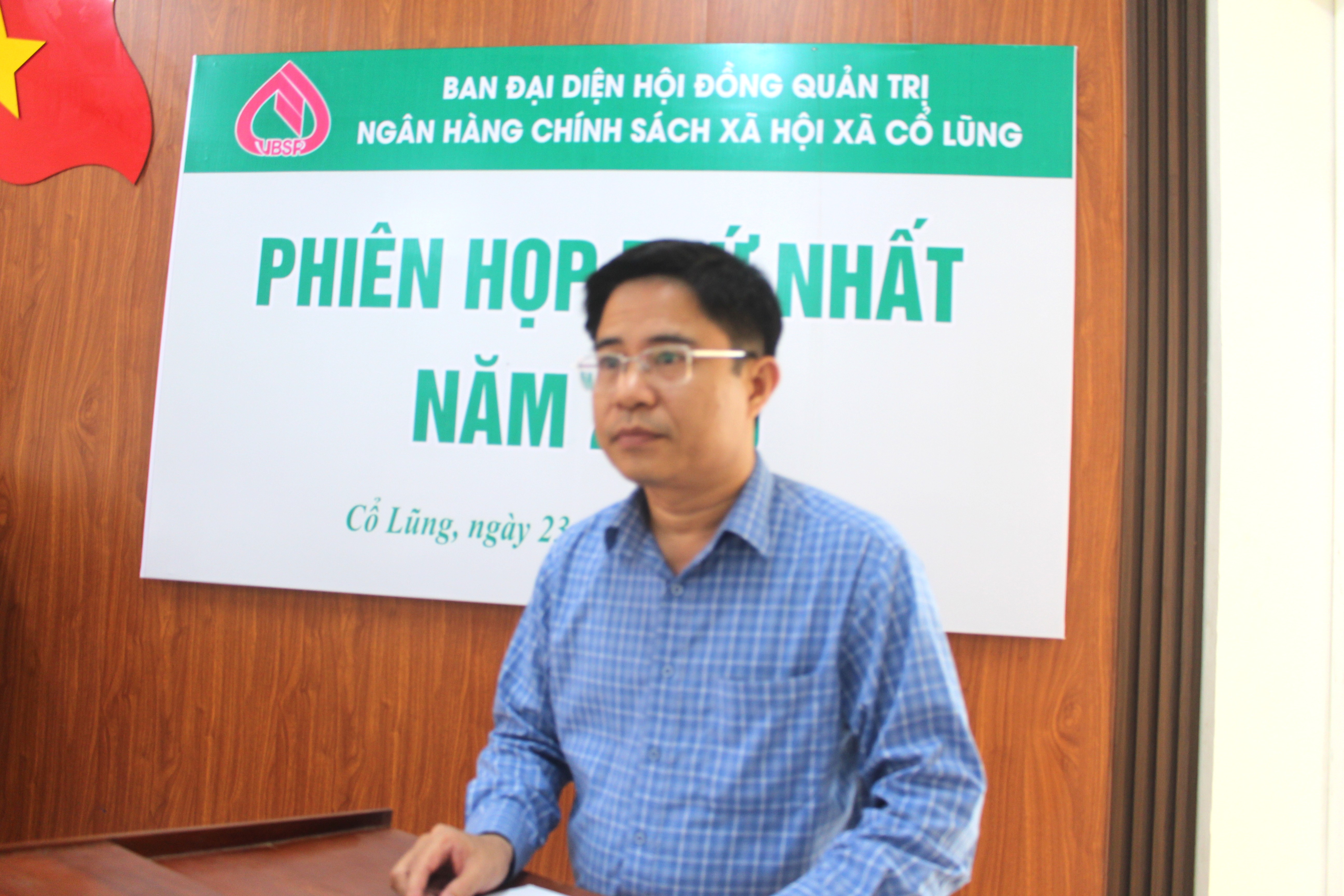ông Phạm Văn Tuấn – Giám đốc phòng giao dịch NHCSXH Bá Thước phát biểu tại phiên họp