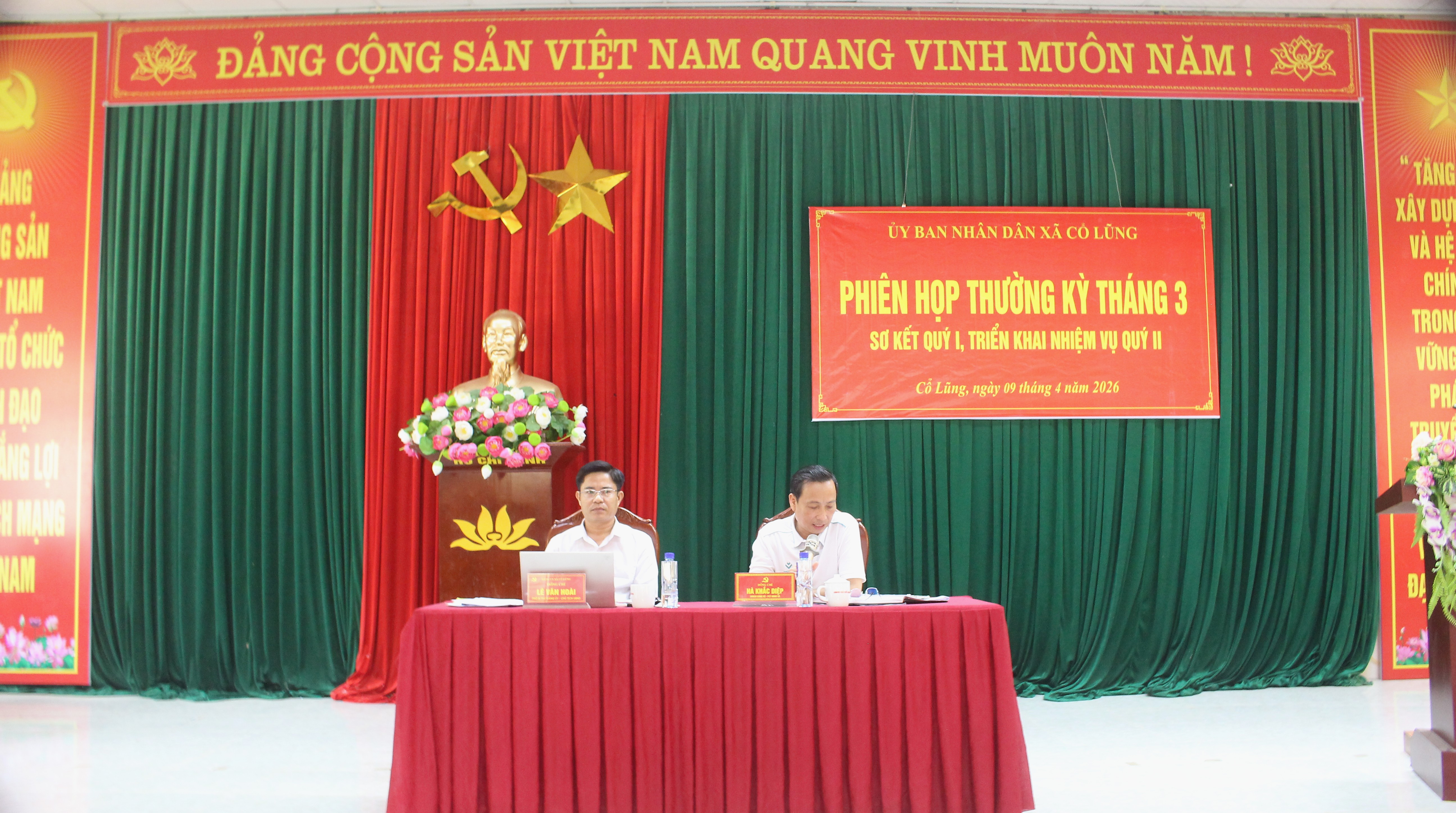 Đồng chủ trì hội nghị có đồng chí Lê Văn Hoài – Phó Bí thư Đảng ủy, Chủ tịch UBND xã và đồng chí Hà Khắc Diệp – Phó Chủ tịch UBND xã.