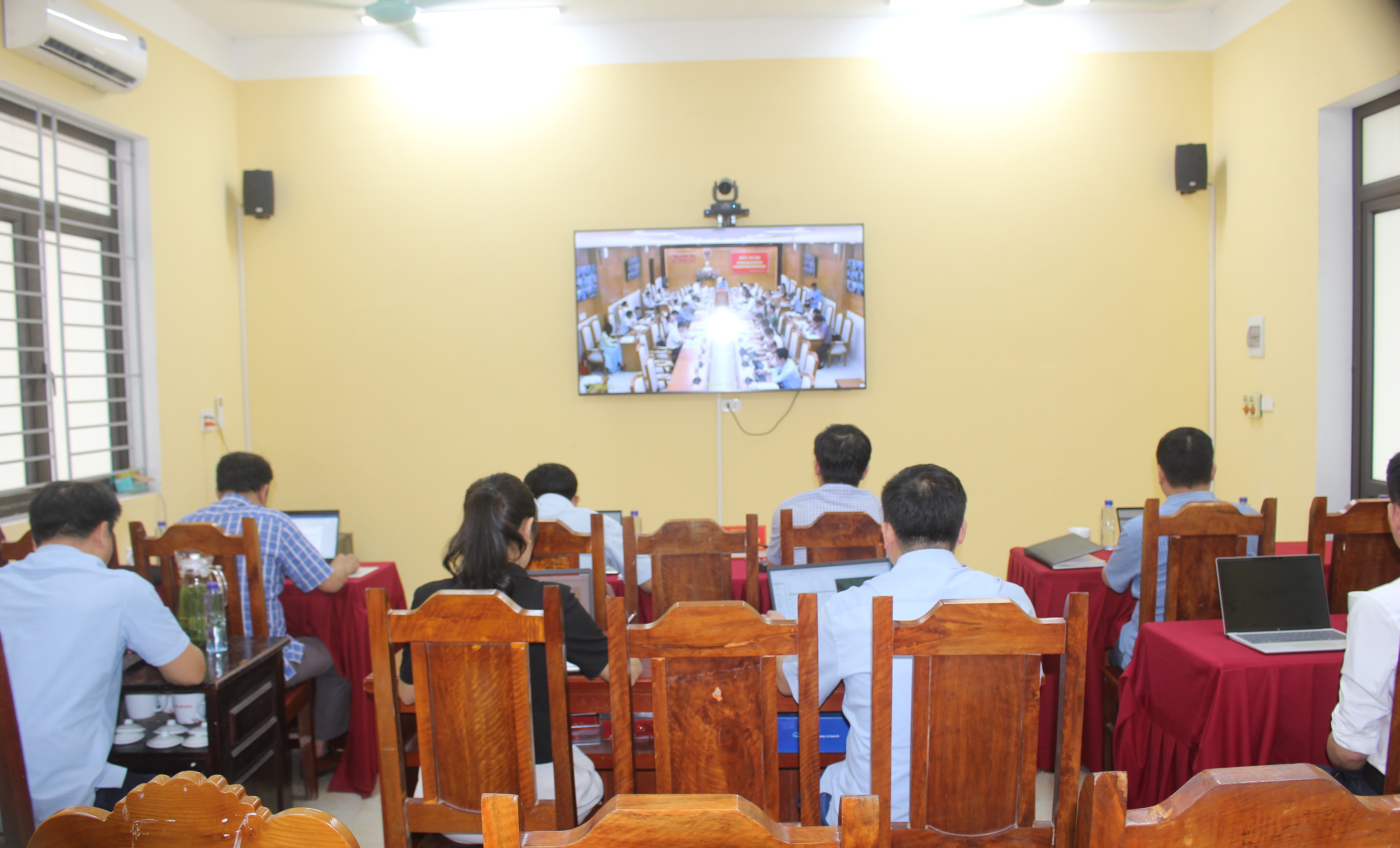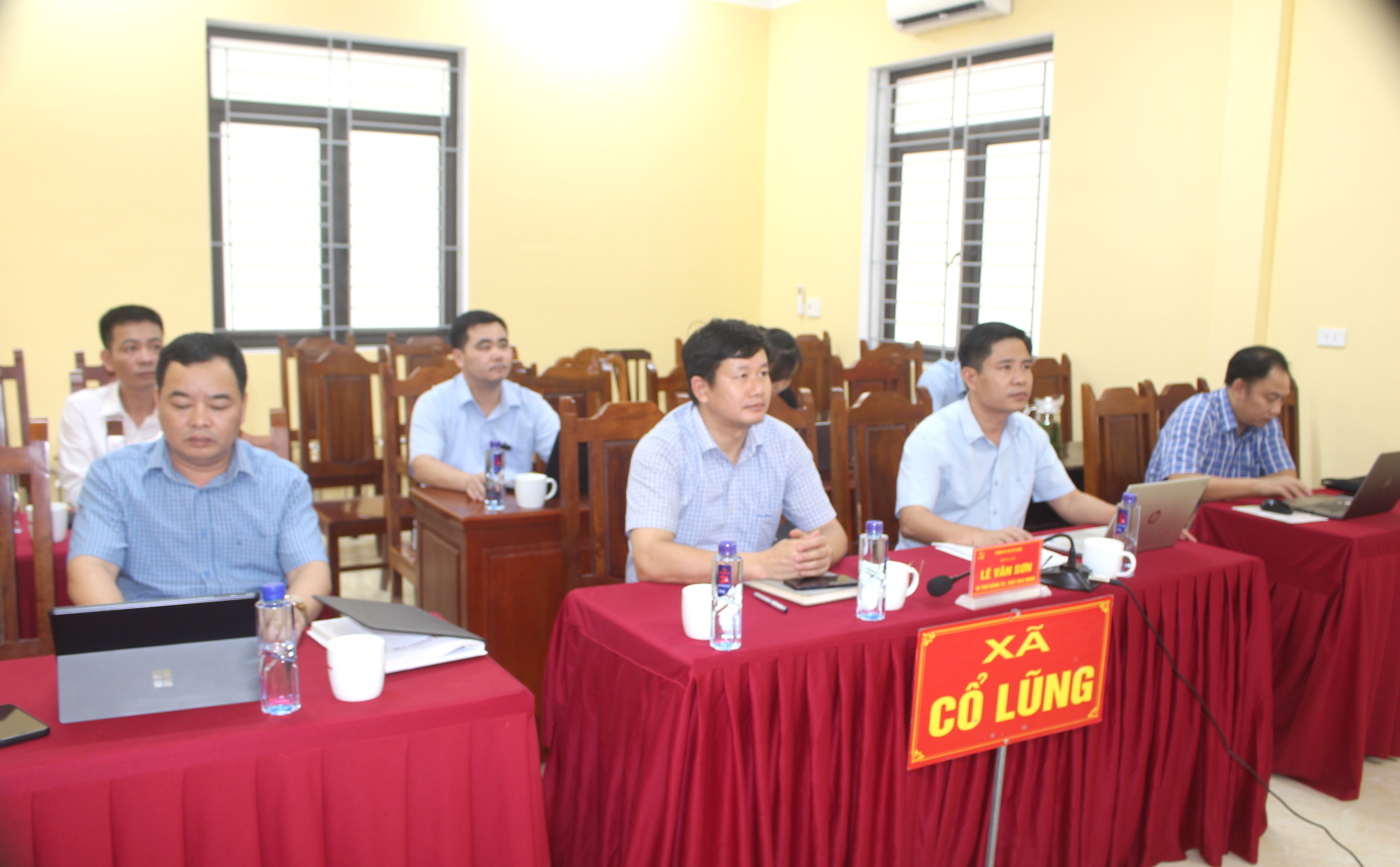 đồng chí Lê Văn Sơn – Bí thư Đảng ủy, Chủ tịch HĐND xã; đồng chí Lê Văn Hoài – Phó Bí thư Đảng ủy, Chủ tịch UBND xã cùng các đồng chí cán bộ, công chức chuyên môn dự hội nghị tại điểm cầu xã Cổ Lũng.